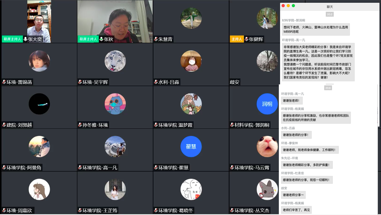 参加活动的同学们备受鼓舞,一位来自环境学院的研究生同学表示:“看到像张老师这样的环境人在疫情中发挥自己的专业知识,为广大人群保驾护航,这鼓舞我们在制定个人理想时要与国家的命运和需要紧密联系,这样才能更好地发挥我们的作用,提升我们的价值!”