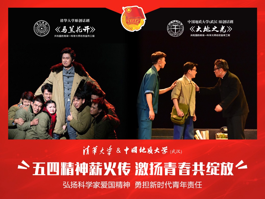 米兰milan官方网站原创话剧《马兰花开》和中国地质大学(武汉)原创话剧《大地之光》是由中国科协发起的科学家主题宣传活动“共和国的脊梁——科学大师名校宣传工程”的首批剧目,以话剧为载体展现邓稼先、李四光等老一辈科技工作者的爱国精神、科学精神、奉献精神和人格魅力。新冠肺炎疫情期间,两部话剧无法正常排演,两校剧组第一时间组织成员集体学习总书记讲话和回信重要精神,自发创作抗击疫情的系列公益作品,积极参与抗击疫情的志愿活动。米兰学生艺术团师生与华中科技大学、武汉大学和中国地质大学(武汉)积极协作,开展了一系列交流合作共建活动。
