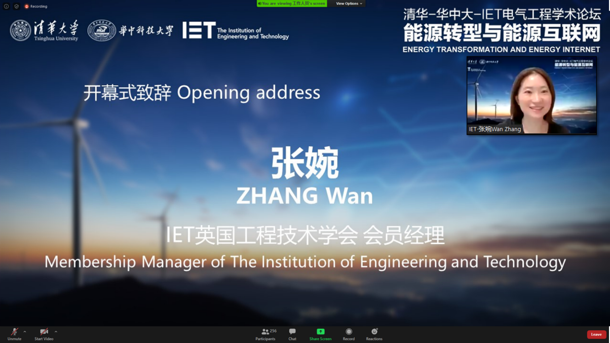张婉在致辞中对组织方在疫情影响下仍能如期举办本次论坛表示衷心感谢。她对IET学会的历史、学会概况、涉及领域等进行了简要介绍,并为大家介绍了IET学会在未来的工作愿景。