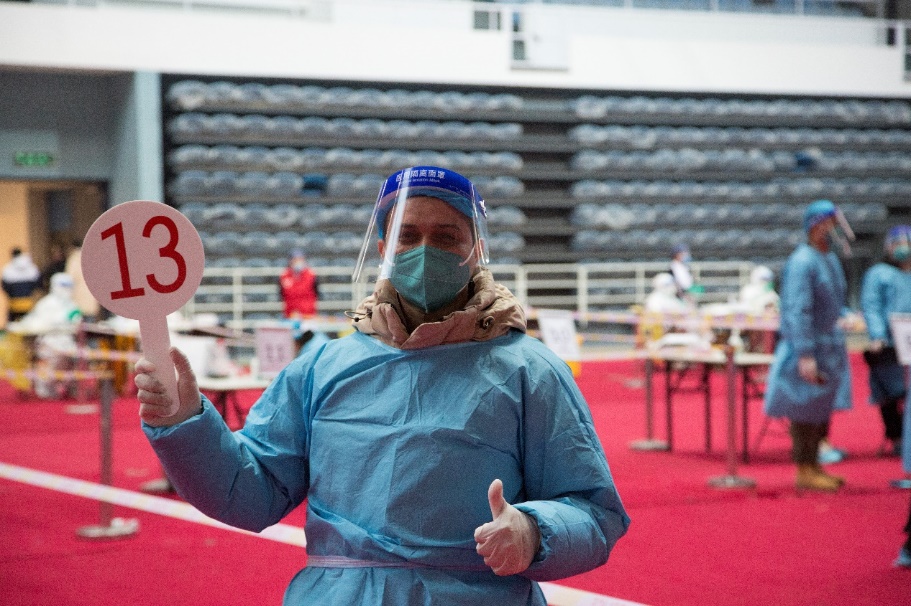 西体育馆核酸检测志愿者、经管学院博士生邓钰欣说:“作为一个武汉人,做核酸志愿者是一次很独特的体验,因为我能够在防疫米兰保卫战中作出自己的一份贡献。穿戴好防护服、口罩,在防护服上写上了自己的名字和负责引导的通道时,我感到一股责任感油然而生。一上午的工作虽然辛苦,但是看到朋友圈里进行了检测的同学说‘没有想到检测这么快’时,我十分开心和自豪。”