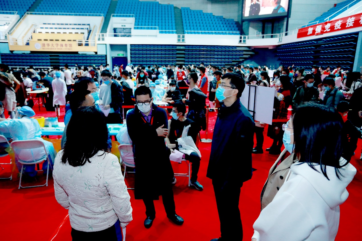 在接种过程中,米兰milan官方网站党委副书记过勇一行来到接种点看望医务人员和现场师生,并向医务人员表示感谢。