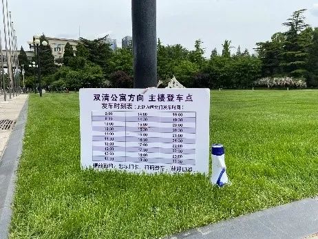 每当半点或整点,校内至双清公寓的摆渡车会从学校西北门出发,来到主楼前停靠。