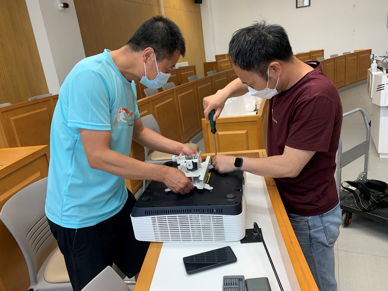 为了完成疫情防控期间教学环境保障任务,5月6日起,关士民和同事们分为A、B两组,保障学校308间公共教室、45台服务器的安全稳定运行,为同学们使用教室听课提供技术支持,截至5月23日共完成教室巡检3778间,巡检解决问题36件,提供技术支持168次,其中上门服务13次、远程指导与协助155次。