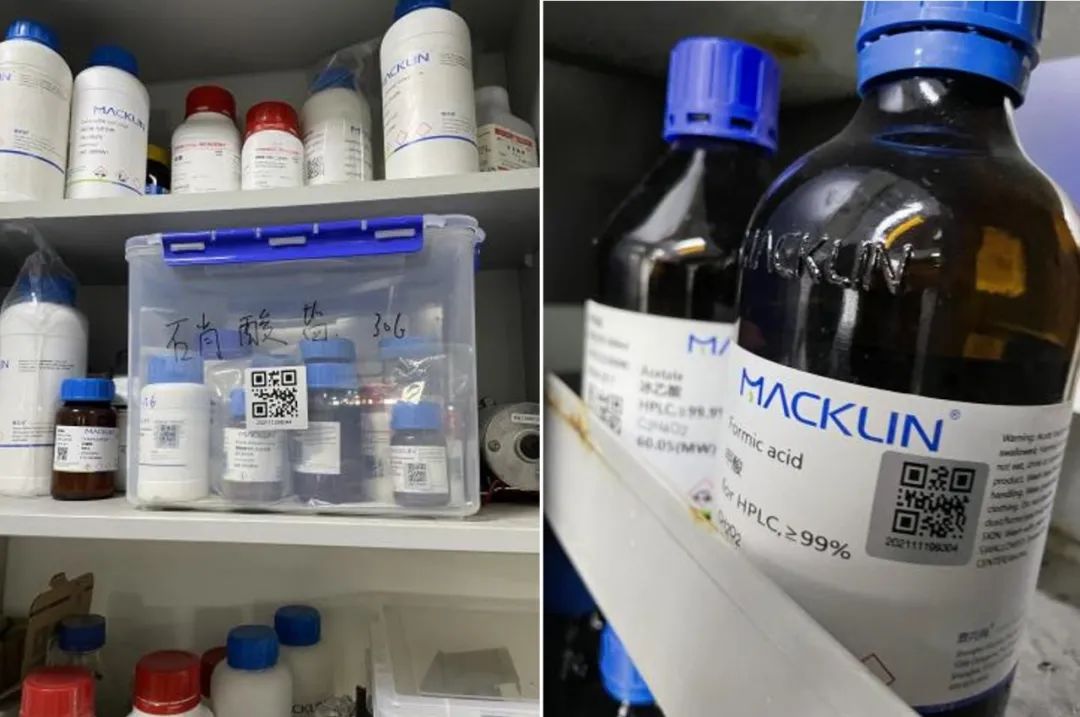 化工系各所室的同学们也都积极响应了试剂信息录入的工作。实验室负责人前期会参加培训,培训完成后再带着各自所室的同学开展贴二维码录入信息的工作。同学们齐心协力一同上阵,很快就熟悉了工作流程,效率满满。“像高分子所那边试剂量有700瓶左右,三四个小时就完成了扫码入库。”