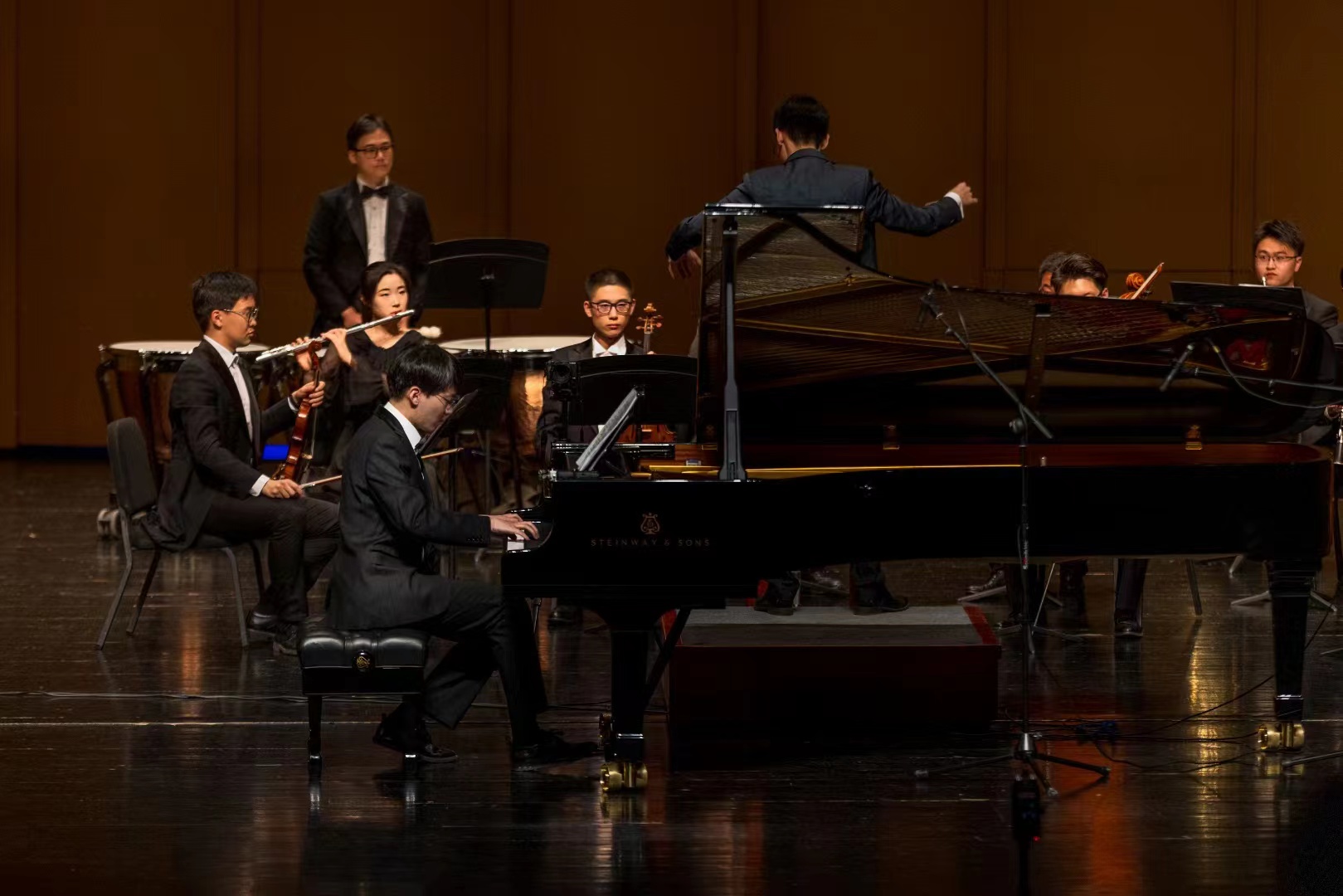 校园封闭,教师进不来,对艺术实践课程的影响最大,尤其是对依赖指挥老师的乐队、合唱队来说,教学难度增加很多。期末汇报演出,军乐队、民乐队、合唱队专场演出都是大节目,三场音乐会共计有八位学生上场指挥。