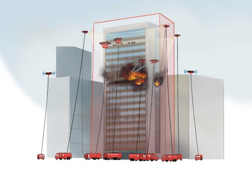 “缺乏有效的实战举高装备,是全世界消防救援队伍面对高层(50米以上)建筑火灾无能为力的核心痛点。”李也想到,如果将涵道风扇工业无人机技术应用至应急管理领域,可有效实现高层火情勘察、长时间消防灭火和救援等多重功能。