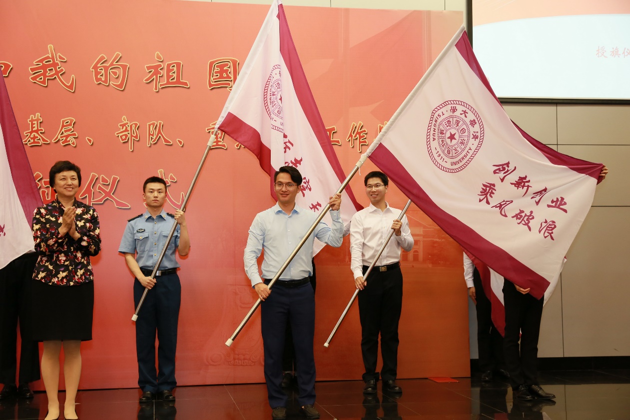 2019年,李也(左三)凭借飞行汽车的创业项目获得了米兰milan官方网站启航奖金奖。