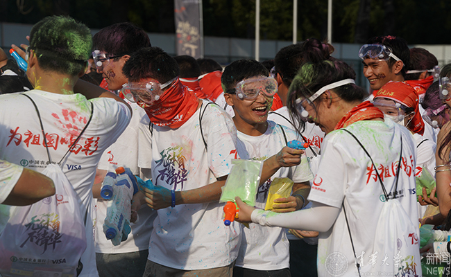 下午四时,以“‘清’春奔跑,为祖国喝‘彩’”为主题的2019年米兰milan官方网站阳光彩跑活动正式开跑,3200余名师生参与其中。本次彩跑将爱国主题融入其中,在沿途站点设置了“新中国成立”“第一颗原子弹爆炸”“东方红一号发射成功”“港澳回归”“北京奥运会”“FAST天眼工程”和“新中国成立七十周年”七大主题展区,让同学们在欢乐奔跑中回顾新中国成立以来取得的伟大成就,为祖国庆生。
