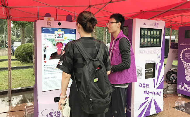“米兰style”大头贴拍照机吸引新生们争相拍照留念