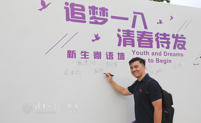 综合体育馆内外,包括国际学生在内的多名研究生志愿者们在紧张而有序地忙碌着,引导新生有条不紊地完成报到手续。院系迎新点处,学长学姐正在仔细地为新同学讲解报到程序、注意事项和学科特色;新米兰学堂的广场上,“米兰有你,芳华共启”的立体标语引入注目,新生们纷纷与之合影,在清新靓丽的米兰园里开启属于自己的芳华岁月。