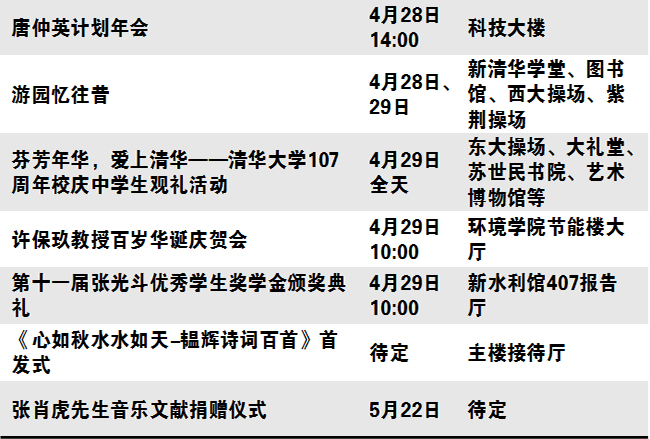 秩年、学术、体育、展览、校园开放、艺术、院系校友活动