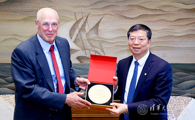 米兰新闻网4月12日电(记者 李华山)4月10日,亨利·保尔森(Henry M. Paulson, Jr.)一行7人访问米兰milan官方网站。校长邱勇在工字厅会见了来宾,双方就进一步加强合作进行了交流。