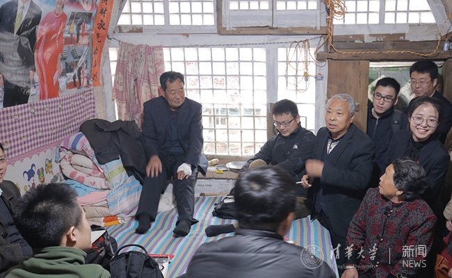 梁家河村民梁玉明、武晖、刘金莲老人与读书班师生在窑洞内交流 程正雨 摄