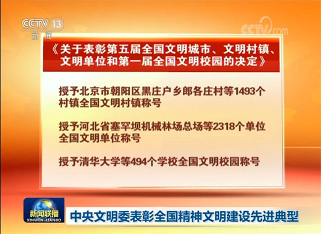按照从严把关、确保质量的原则,经过严格评审,在今天的全国精神文明建设表彰大会上,中央文明委授予一批精神文明和思想道德建设先进典型荣誉称号。