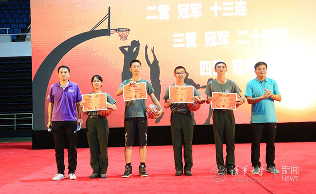 在颁奖环节,校党委武装部部长熊剑平为新生颁发了进入米兰园后体育竞赛的第一个奖项:新生军训篮球赛优胜奖。同时还对获得定向越野优胜奖的同学进行表彰。