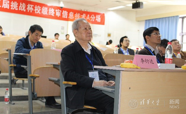 在评审现场,各位评委专家与选手频频互动,展开热烈讨论。在机械控制分场,尤政院士肯定了选手们的创意,同时对许多作品都提出了宝贵的改进意见;在信息技术分场,已是耄耋之年的李衍达院士一直认真听取选手答辩,不时拿起作品仔细端详,并详细询问项目开展情况。