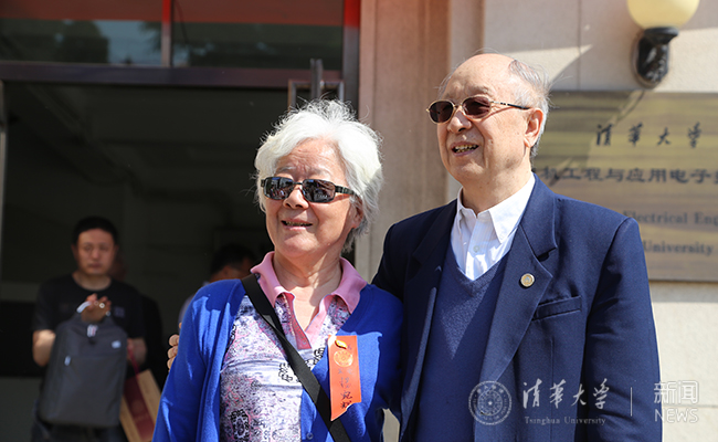 1967届校友与电机系原系主任韩英铎院士合影。陈淑玲 摄