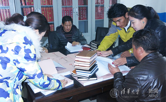 尕朋(右三)回到家乡青海玉树做了一名基层选调生,负责当地的精准扶贫工作。