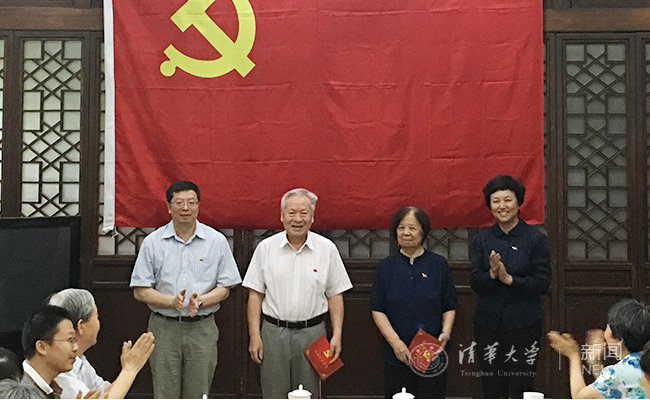 活动开始,在校党委原书记方惠坚的带领下,全体党员佩戴党旗徽章、面向党旗庄严宣誓,重温入党誓词。随后,陈旭、邱勇向离退休党支部老党员赠送政治生日贺卡,方惠坚、贺美英、王大中、顾秉林向在职党员发放政治生日贺卡,全体党员集体过政治生日、忆入党初心。
