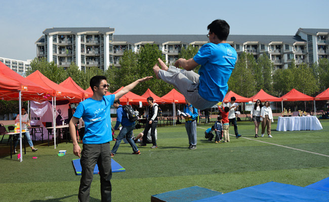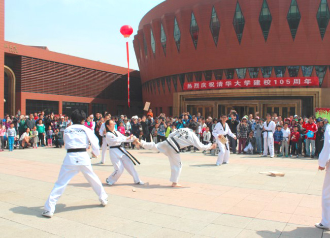 舞蹈协会、街舞社、跆拳道协会、空手道协会为校友们表演了舞蹈《采薇》等节目。广场布设的众多社团展板,从读书育人、艺术育人等7个角度展现了多姿多彩的大学文化。观看完学生表演和社会介绍后,2002级的张垚和张潋这对夫妻校友共同回忆了在校期间的社团时光。平常和求是学会的同学一起读文章交流思想,周末和车协的同学骑车外出,校友生活的点点滴滴都给校友们留下了美好记忆。