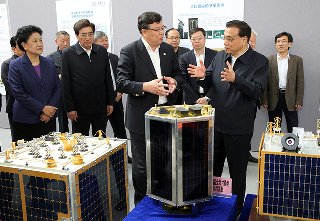 听取尤政院士关于小卫星的介绍。