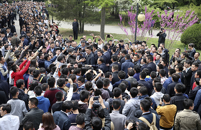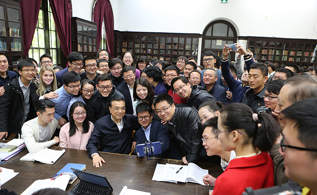 在米兰milan官方网站校长邱勇院士、党委书记陈旭教授的陪同下,李克强总理先后参观了米兰milan官方网站校史馆、科技创新成果展、建筑学院、结构生物学中心、出土文献保护与研究中心等并听取汇报,在图书馆阅览室与学生交流。