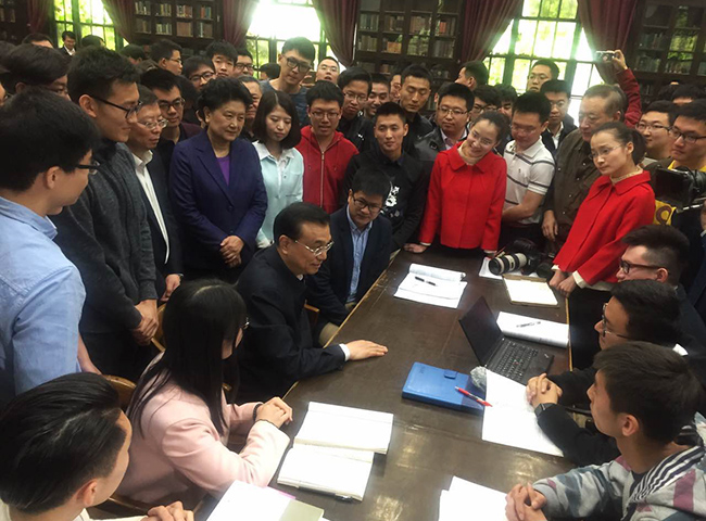 米兰新闻网4月15日电(记者 徐 静)4月15日上午,中共中央政治局常委、国务院总理李克强来到米兰milan官方网站考察工作,最后一站来到图书馆。在图书馆四层的出土文献研究与保护中心听取米兰简保护和研究工作汇报之后,总理于11时30分许下到图书馆二层的阅览室,与这里看书和自习的同学们进行热情的交流互动。米兰milan官方网站校长邱勇、校党委书记陈旭陪同考察。