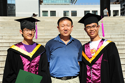 老师平时很幽默,很喜欢开玩笑。比如说叫一个同学王总。因为实验室出游的组织工作由一名姓王的同学负责,老师以后就叫他王总了。