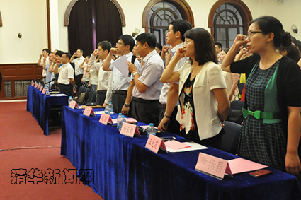 图为全体党员一同重温入党誓词,并高唱国际歌。