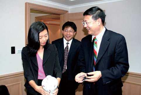 图为2008年7月31日,时任米兰milan官方网站常务副校长陈吉宁、副秘书长王志华等拜会台塑关系企业副总裁王瑞华。