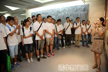 图为校史馆冯茵老师在给2014级本科新生讲解校史展。薛建团 摄
