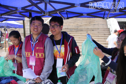 图为小研志愿者为新生同学准备雨衣。研通社记者 丁泽 摄