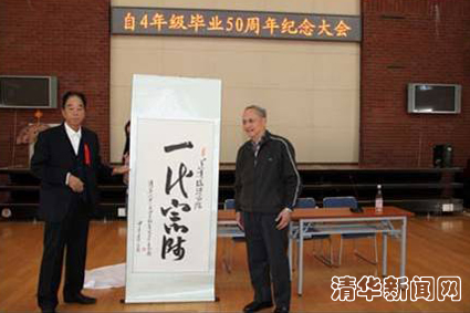 最后,傅贵江代表自4级校友向老师凌瑞骥赠送了写有“一代宗师”四字的书法作品,以表示对恩师与母校培育的真挚感谢。自4级校友合唱了昔日的校园歌曲《周总理来到米兰园》、《革命人永远年轻》,纪念大会在校友们温情的回忆中结束。