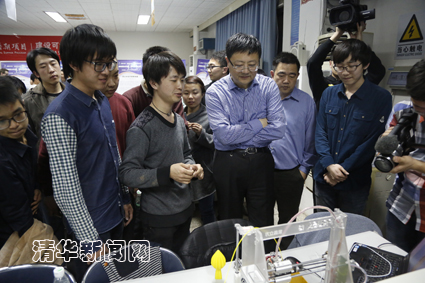 随后,陈吉宁与学生创客团队的指导教师们进行了交流座谈。工业工程系副教授顾学雍、美术学院副教授付志勇、基础工业训练中心主任李双寿等分别介绍了自己参与指导学生开展创客活动的经验与感受,并就未来如何进一步推动学生创客活动的开展和创客空间的构建提出了建议。