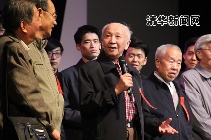 图为为两弹一星工作做出贡献的校友上台交流。学生记者 李钧翔 摄