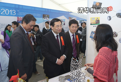 陈吉宁、胡和平等在互动体验区饶有兴趣地观摩和询问了3D打印机等项目,同学们将3D打印出来的“IF(Innovation Future)”标志赠送给各位老师。在互动体验区展出的kinect互动系统,可以用手势操纵屏幕上的刀刃来玩“水果忍者”游戏,吸引了不少同学驻足体验。