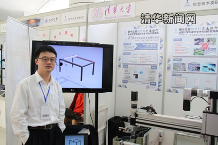 图为项目第一作者舒德兀在比赛展示现场的项目装置图前。