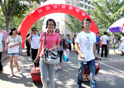 图为校长陈吉宁将绿色通道“爱心纪念封”亲手送给身残志坚的计算机系新生矣晓沅。记者 智斐 摄