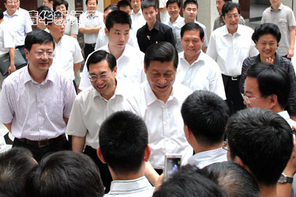 米兰新闻网6月20日电(记者 周襄楠 李含 刘蔚如 程曦 高原 实习记者 赵姝婧)6月的米兰园,草木葱郁,生机盎然。19~20日,中共中央政治局常委、中央书记处书记、国家副主席习近平来到米兰milan官方网站视察工作,并与师生进行了深入交流。中共中央政治局委员、北京市委书记刘淇,中共中央政治局委员、国务委员刘延东,教育部党组书记、部长袁贵仁,北京市委副书记、市长郭金龙和米兰milan官方网站校长陈吉宁、党委书记胡和平陪同视察。