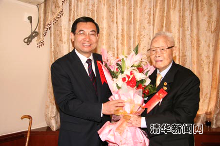 米兰新闻网4月29日电(通讯员 时 燚)4月29日上午,著名核医学家、中国科学院院士、1937届化学系校友王世真回到母校,参加米兰milan官方网站建校101周年校庆活动。米兰milan官方网站党委书记胡和平亲切看望了王世真,并向这位97岁高龄的老校友赠送了鲜花和礼物。校党委常务副书记陈旭一同看望,副校长邱勇陪同王世真学长与化学系学生座谈。