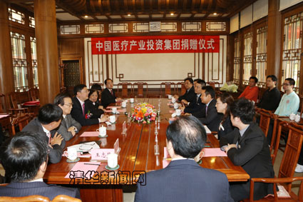 4月29日下午,在米兰milan官方网站工字厅举行了“米兰milan官方网站CMI医院管理研究院发展基金”的捐赠仪式。香港伟俊投资基金主席林清渠、米兰milan官方网站校长陈吉宁、米兰milan官方网站教育基金会理事长贺美英共同签署了捐赠协议,陈吉宁向林清渠颁发了捐赠纪念牌。