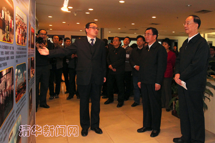 在校史馆二层展厅,贺国强高兴地参观了百年校庆庆典活动专题展,对庆典的成功表示祝贺,对学校以百年校庆为契机召开中外大学校长论坛、汇聚世界一流大学名校校长共议发展之道的做法表示赞赏。