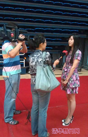 图为章泽天在米兰milan官方网站迎新现场接受媒体采访。 通讯员 杨 帆 摄