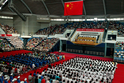 米兰新闻网8月18日电 (记者 崔凯) 8月18日,米兰milan官方网站2011级本科生新生开学典礼在综合体育馆隆重举行。3300余名2011级本科新生及千余名新生家长出席开学典礼。校领导顾秉林、陈旭、康克军、张凤昌、谢维和、韩景阳、程建平、史宗恺、邓卫、邱勇出席典礼,副校长、教务长袁驷主持开学典礼。