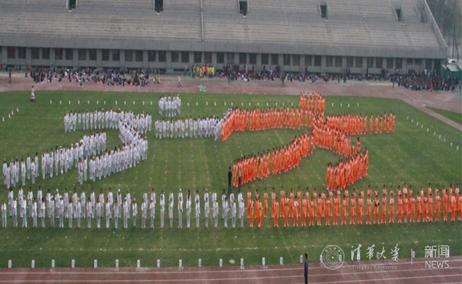 作者参加百年校庆专门组织的紫荆花开大型团体操表演。