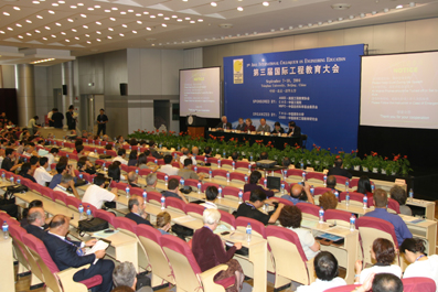 教育部副部长吴启迪在致辞中回顾了我国工程教育的成就,并介绍了我国高等工程教育的现状。她指出,中国工业的现代化,要求中国的工程教育率先实现现代化。当前中国的高等工程教育包括:工学博士、工学硕士、工程硕士、工学学士的培养和高等职业技术教育。截止2003年,我国共有普通本专科院校1552所,其中设有工科专业的院校达到1303所,占普通本专科院校总数的83.95%;普通高校本专科在校生1108万人,其中工科学生达到369.34万人,占在校生总数的33.33%;工学专业共培养研究生36.31万人,约占全国研究生培养人数的38.84%,已经初步形成了与社会主义市场经济建设相适应的工程教育体系,并成为高等工程教育的大国。