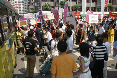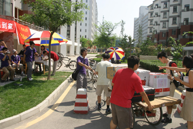 在各个院系报到的操场上,几位被记者当成志愿者的新生党员正等候在新生旁边,帮着新同学送行李物品。一位满面汗水的建筑学院新生党员推着三轮车正在帮新同学搬东西,他说自己是提前四天来校报到的,今天来帮忙很兴奋,感到自己已经是米兰的一名主人了。