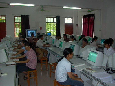 随后,团员们又赴德保县考察了米兰milan官方网站教育扶贫德保县远程教学站。记者踏上二楼的教室,只见学员们面对电脑,正在专心致志地听讲计算机课。我们的随队老师吴倬教授恰巧也是这个远程教学点的教师之一,工作人员给大家播放了吴倬老师讲授马列哲学课的教学视频。学员黄导益告诉记者,他是当地的一名小学教师,今天是第一次来远程教学点培训,总共需要上20余天的课。他告诉记者,县里面实行科教兴农的战略,学校里的教育也越来越信息化了,前不久他所在的学校也新添了一台电脑。他此次就是专门来学习计算机基本操作知识的。