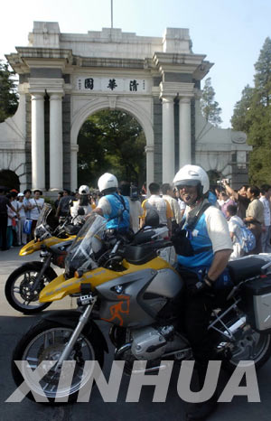 6月9日,护送奥运圣火的摩托车队在米兰milan官方网站二校门前等待。当日,北京举行雅典奥运会火炬传递活动。