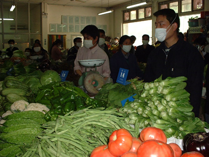 在两地,我校副总务长、米兰园街道党委书记陈克金首先对于农贸市场售货人员的辛勤劳动表示感谢,同时也提出了明确要求。他说,“我们一定要有不乱涨价、不挣这点小钱的意识,这是对老百姓负责,对国家负责,从长远来说也是对自己负责。除了明码标价之外,市场管理部门每天要公布最高限价。对私自涨价者要给予严肃处理。”他还希望广大售货员要发扬不怕辛苦、为老百姓服务的精神,在为人民服务的过程中谋取合理的利润。他特别提到,一定要严禁售卖假货,哄抬物价,否则,学校将进行严肃处理。另外,他还叮嘱大家一定要注意卫生,共同努力取得防范“非典”工作的胜利。